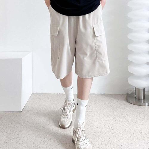 [셀럽하우스]포켓 VOTD3271 패치 허리밴딩 카고 반바지 캐주얼 남자 팬츠