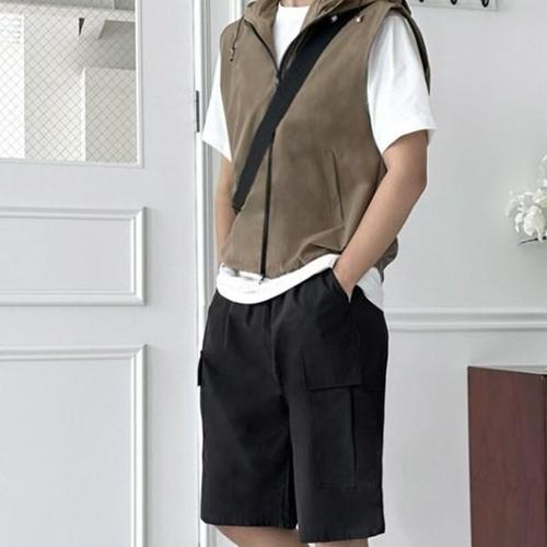 [옷자락] 남자 스트릿 후드 바람막이 베스트 카고 반바지 세트