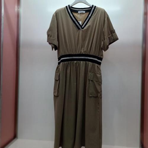 [라티움]Destijl HC06 스판 소매 롤업 A라인 플레어 브이넥 반팔 카고 원피스 D2523op10B (33046340)
