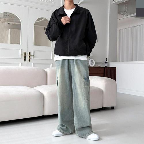 제트디디 남자 복고 입체 세미 와이드 밴딩 카고 데님 팬츠 청바지