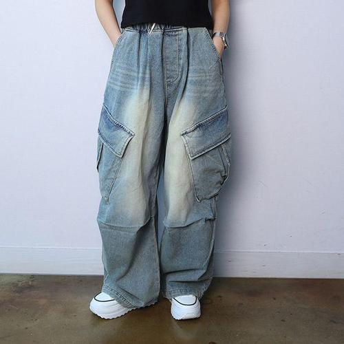 데님 밴딩 청바지 와이드 카고 머드워싱 SF1048M GAA WFLQN8K