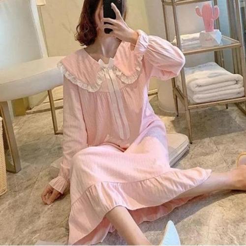 여성 레이스 카라 원피스 리본 공주 파자마 수면 잠옷