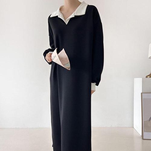 [옷자락]여성 가을 배색 카라 롱임부복 원피스