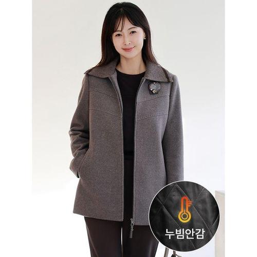[애비뉴투지]엄마옷 울 카라 지퍼 브로치 부분 누빔 여성 봄 가을 초겨울 하프 코트 J11508