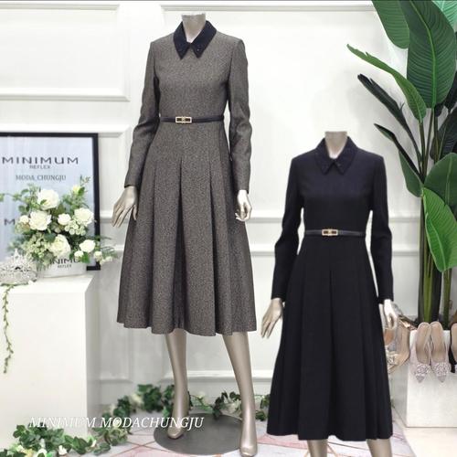 미니멈 세이브존01 사이드 플리츠 카라넥 원피스 MXBAWO4070