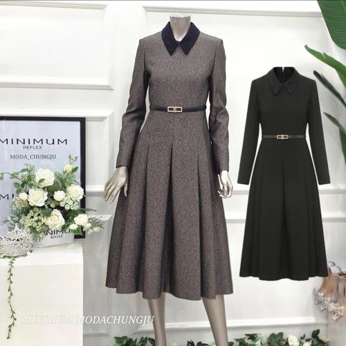(~XXL까지) 엘레오 카라넥 플리츠 원피스 봄 가을 하객룩 오피스룩 모임룩 격식룩 빅사이즈