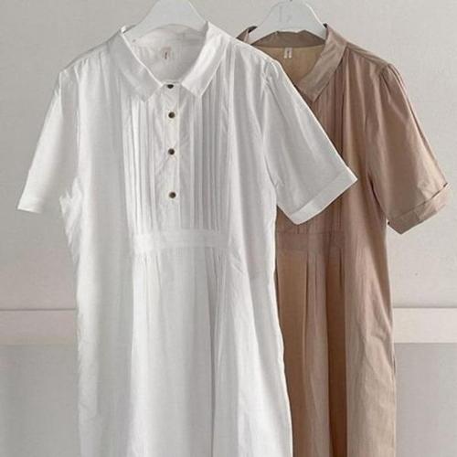 [엄지척]여성 카라 루즈핏 원피스 반팔 무지 린넨 단추 코튼_19951665_667501