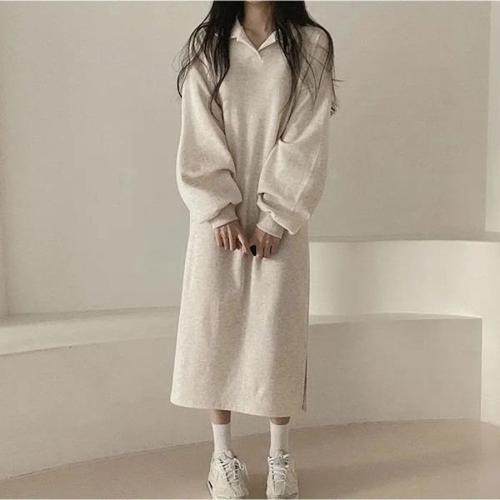 [엄지척]여성 겨울 편한 데일리 루즈핏 면 카라 롱 원피스_19914593_667501