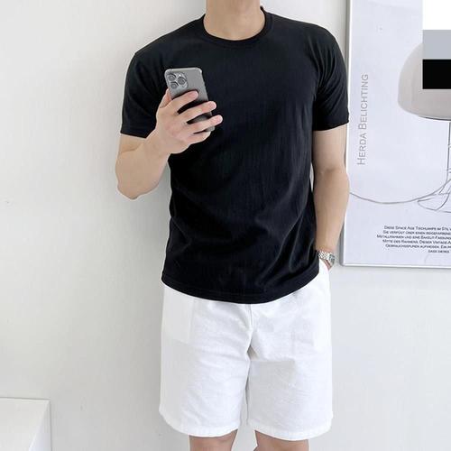 [1+1+1] 면 100% 20수 국내생산 베이직 반팔 남녀공용 블랙 라운드 무지 티셔츠