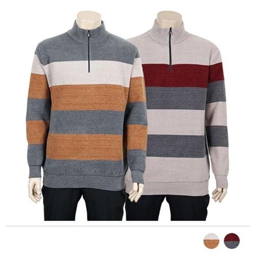[헤지스] 남성 투톤 스트라이프 카라 반팔티셔츠 HZTS5F402N2