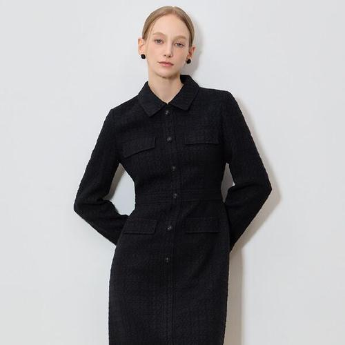 [미니멈]MXDAWO1030BK 트위드 글로우 카라 플레어 원피스_JK