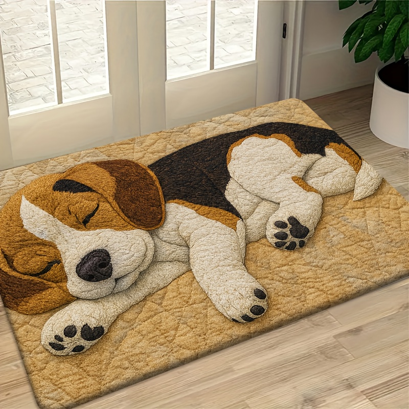 TEMU 플란넬 + 1cm 두께 스펀지 소재 재미있는 도어 매트 | 자는 강아지 자수 스타일 패턴, 부드러운 색상, 정교한 디테일. 침실, 주방, 식당, 욕실 등에 적합한 프린팅 도어매트, 미끄럼 방지 및 세탁기 사용 가능, 다기능 플란넬 매트, 부드럽고 편안하며 실용적, 휴일 장식용