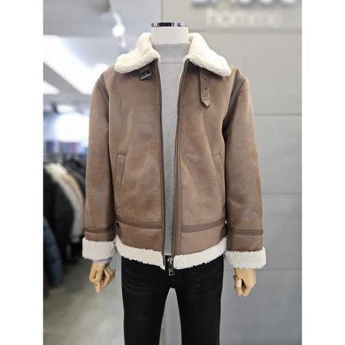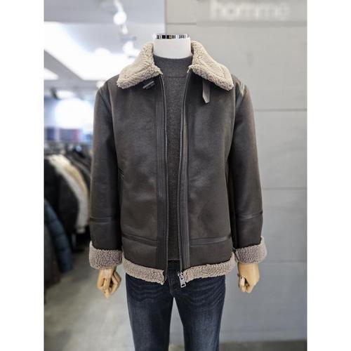 바쏘옴므 세이브존03 바쏘옴므 남자 다크브라운 양가죽 배색 무스탕 점퍼 W