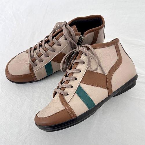[카멜브라운]지쎄수제화 고트가죽 크림 라인 앵클 스니커즈