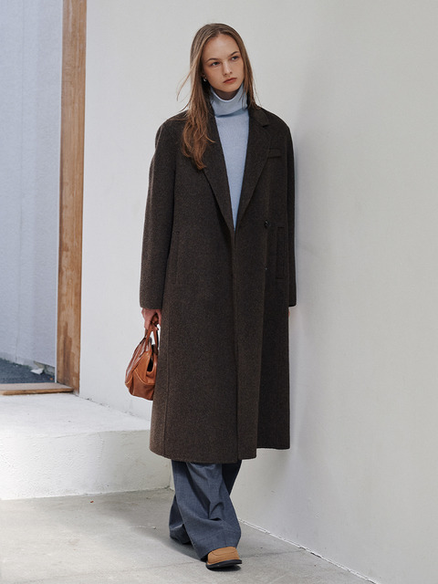 [히이크] 카멜 울 핸드메이드 롱 코트_딥 차콜