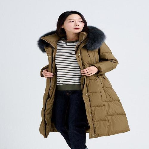 [비브이엘퀸즈][비브이엘퀸즈] 폭스 트리밍 딥 카멜 구스 롱 코트 (P003462644)