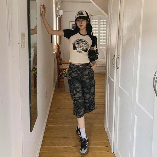 [다잇템]여자 카모플라쥬 건빵 힙무드 하프 팬츠