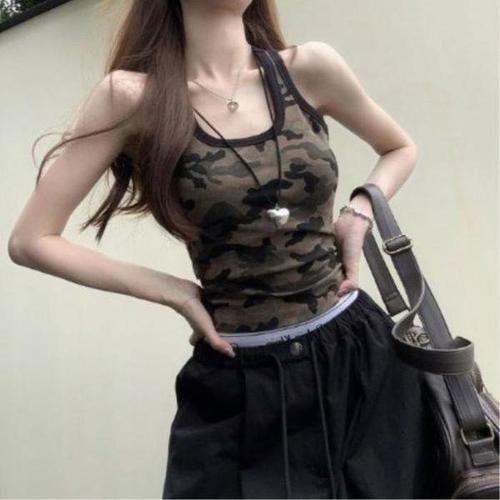 [셀러허브_여성트랜드패션]ONM 여자 카모 크롭 민소매 나시 티셔츠 여름 패
