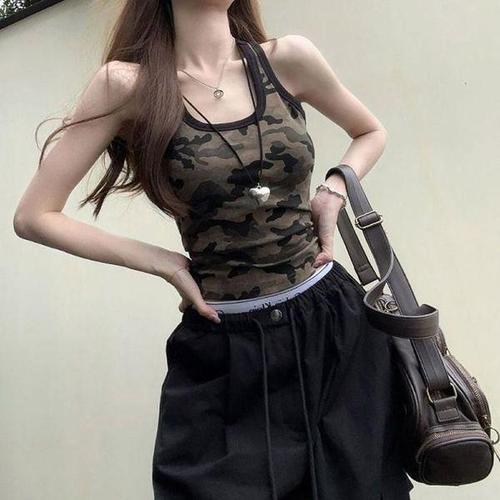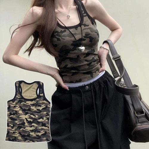 [셀러허브_여성트랜드패션]ONM 카모플라쥬 크롭 나시 스트릿 레이어드