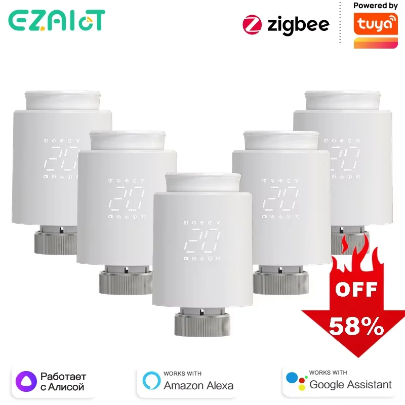 EZAIOT Tuya ZigBee 스마트 TRV 온도 조절 밸브 온도 조절기 라디에이터 액추에이터 온도 컨트롤러 음성 Alexa Google Home Alic