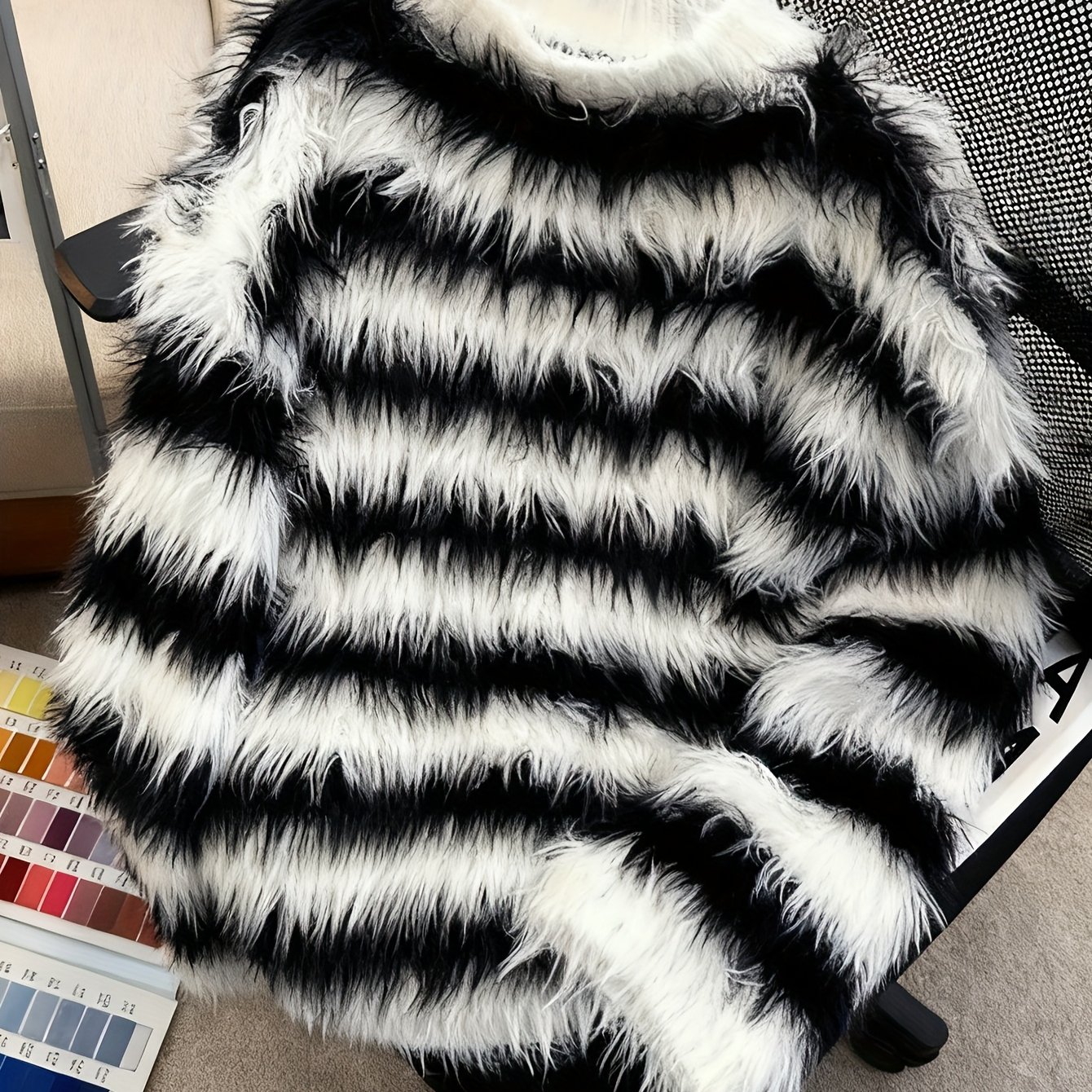 TEMU 새로운 스타일의 인조 밍크 스웨터는 두껍고 부드러운 블랙 앤 화이트 스트라이프가 특징이며 남녀 모두에게 적합합니다. 라운드넥 디자인으로 캐주얼하고 편안한 착용감을 제공합니다.