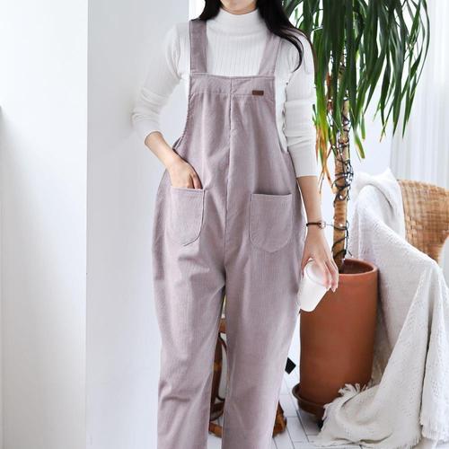 [옷자락]여자 겨울 박시 투포켓 멜빵 기모 골덴 배기 점프수트