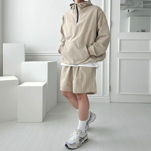 [셀럽하우스]남자 EEUD0148 하프집업 아노락 후드 긴팔 반바지 트레이닝세트