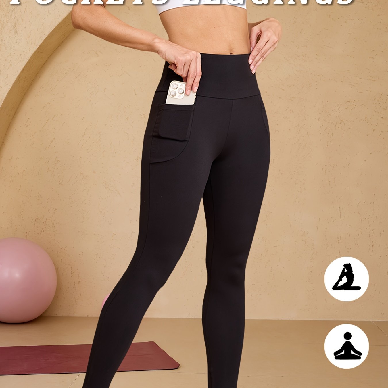 TEMU 부드러운 촉감의 여성용 포켓 레깅스, 하이웨이스트 터미 컨트롤 운동 요가 야외 러닝 팬츠 레깅스