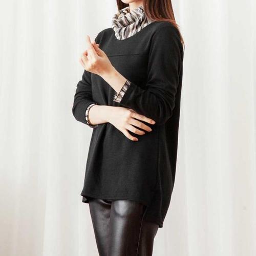 [까르죠아]루즈핏 폴라 롱 티셔츠 빅사이즈 가을 겨울 여성 블라우스 엄마옷 마담 중년 의류