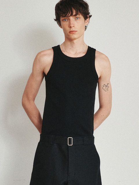 [호이테] 솔리드 슬리브리스 탑 (블랙)