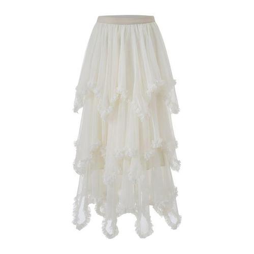 아카나 팝콘 프릴 캉캉 레이스 밴딩 롱 스커트(2color)