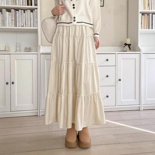 [옷자락]여자 러블리 골덴치마 데이트룩 셔링 캉캉 롱스커트