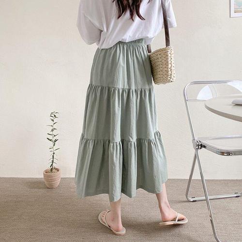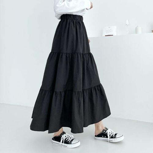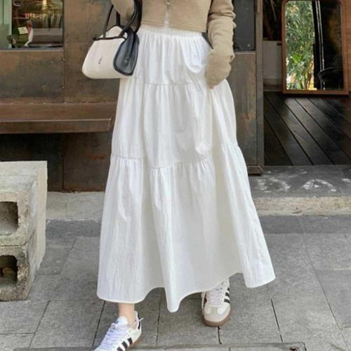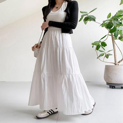 [에이치플러스몰]3단 캉캉 롱 스커트 밴딩 치마 캐주얼
