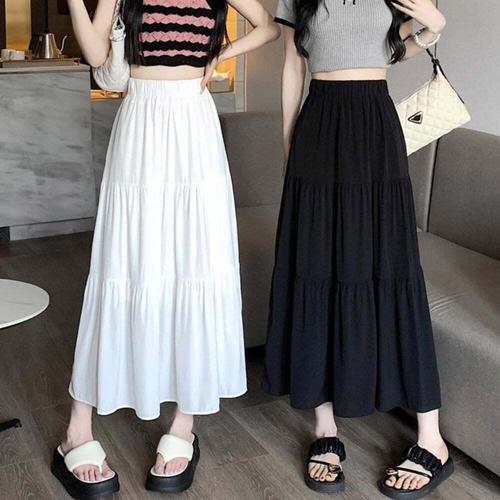 잘빠진 여성용 소프트 캉캉 밴딩 롱 스커트