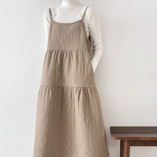 플러리싱 / 빅사이즈 퀼팅 패딩 나시끈 캉캉 롱원피스 플러리싱