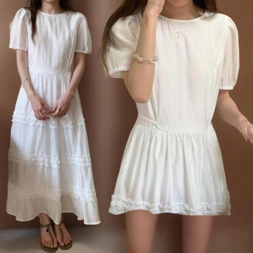 [신상오픈런]여성용 화이트 프릴 민소매 롱 드레스 캉캉 스타일