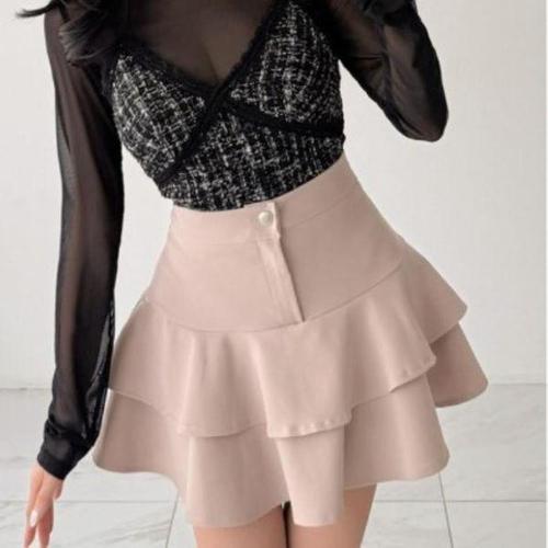 [신상오픈런]여성용 사랑스러운 더블 레이어 캉캉 플레어 미니 스커트