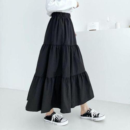 잘빠진 여성용 소프트 캉캉 밴딩 롱 스커트