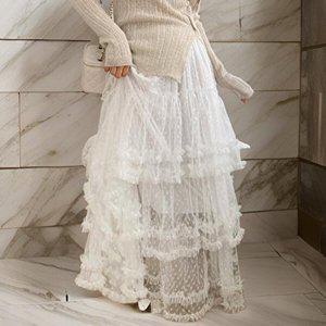 [옷자락]여성용 무지 컬러 캉캉 밴딩 롱 스커트