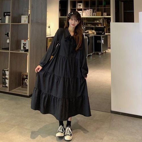 [샵앤]여성 라운드 루즈핏 등원룩 데일리 캉캉 롱원피스 ARA-WDR-3031-블랙