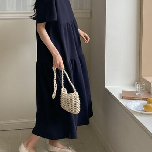 에르디테 / 우아한 A라인 루즈핏 반팔 셔링 캉캉 맥시 롱 원피스