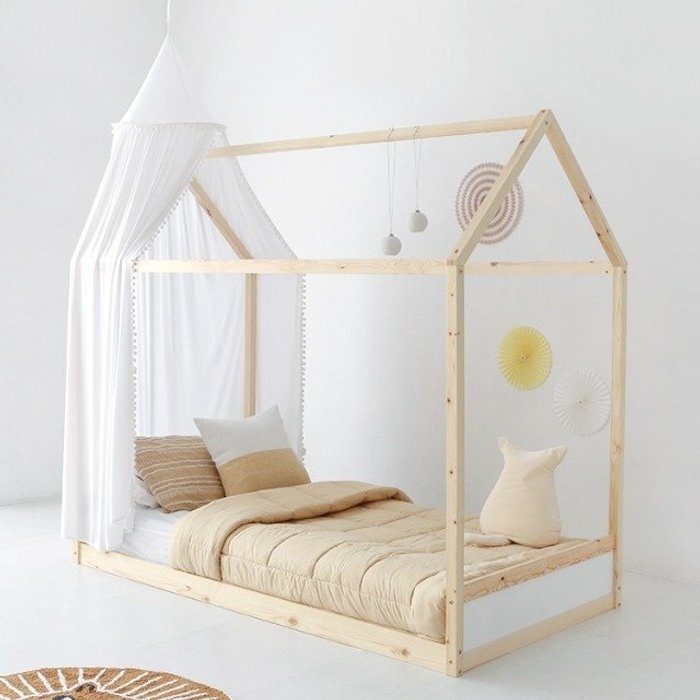 소나무 원목 침대 캐노피 침대프레임 아이방 꾸미기 침실 인테리어
