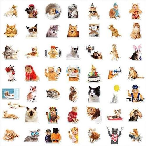 [셀럽하우스]고양이 TJGX6964 귀여운 스티커 캐리어 50장 노트북 방수 세트