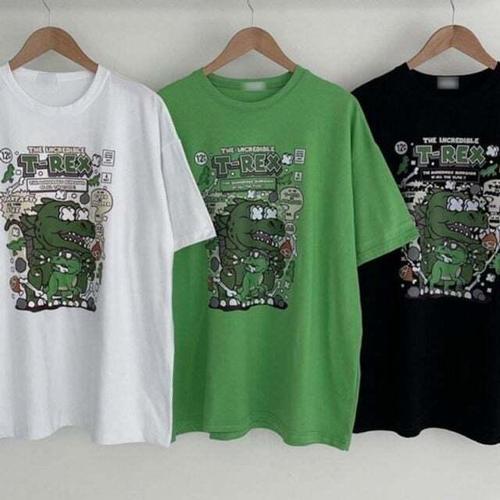 [셀럽하우스]여성 DGTH4492 루즈핏 캐릭터 프린팅 여름 반소매 티셔츠