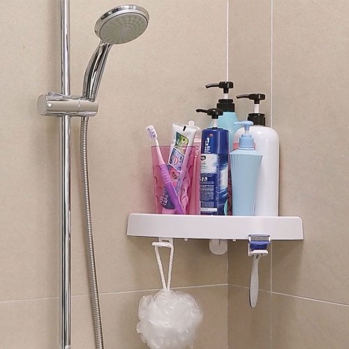 무타공 코너 부착형 물빠짐 욕실선반 거치대 4colors (수납형)