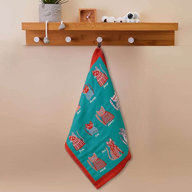 TEMU 2025 귀여운 핸드타월 & 대형 워시클로스 - 부드럽고 털 빠지지 않는 욕실 & 얼굴 타월, 고양이 패턴 (태비, 턱시도, 페르시안), 내구성 강화, 욕실, 샤워용 - 손세탁 전용, 팜하우스 스타일|샤워타올