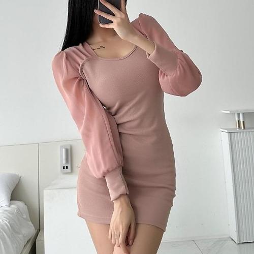 [다잇템][다잇템] 여자 콘트라스트 캐쥬얼 소매쉬폰 스웨터 비침 원피스_15525974_588872