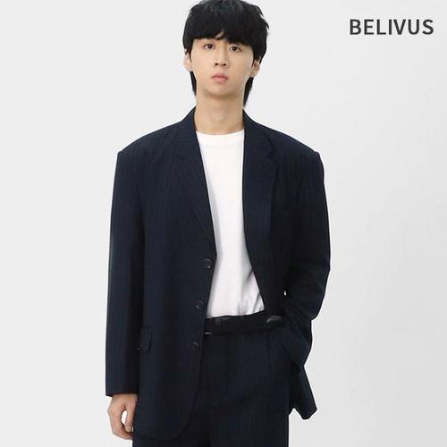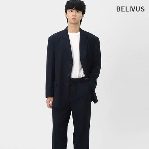[빌리버스]빌리버스 남성 캐주얼 핀스트라이프 테일러 자켓 오버핏 수트 정장 세트 BYM017