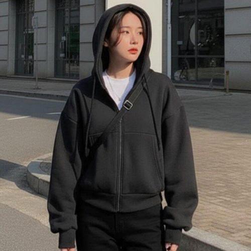 [굿쇼핑몰_의류]여성 캐주얼 오버핏 후드티 기모 크롭 후드집업 4컬러