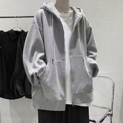 1+1 남자 심플 긴팔 후드티 맨투맨 오버핏 무지 후드집업 빅사이즈 트레이닝복 기모 두꺼운 데일리 캐주얼 상의 루즈핏 학생 아우터 상의